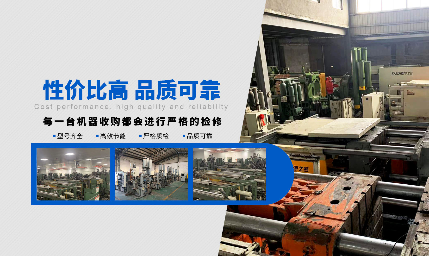 ? ? ? ?臺(tái)州久冠機(jī)械科技有限公司位于浙江省臺(tái)州市路橋區(qū)峰江鎮(zhèn)峰江路一號(hào) ,專業(yè)從事二手壓鑄機(jī)及周邊設(shè)備業(yè)務(wù),專營國內(nèi)知名品牌,如香港力勁,廣東伊之密,無錫新佳盛,常州力卓等優(yōu)質(zhì)二手壓鑄機(jī),為國內(nèi)外鑄造產(chǎn)業(yè)鏈用戶提供優(yōu)質(zhì)可靠的二手壓鑄機(jī)。公司發(fā)展與壯大二十年來,我們一直秉承團(tuán)結(jié)協(xié)作,互惠互利,誠實(shí)守信,質(zhì)優(yōu)價(jià)廉的原則和理念持續(xù)為客戶提供優(yōu)質(zhì)貨源,自公司成立以來,有在線專家服務(wù),并參加國內(nèi)外壓鑄機(jī)展會(huì),現(xiàn)二手壓鑄機(jī)國際店鋪已搭建成型,歡迎國內(nèi)各位新老朋友前來咨詢選購!